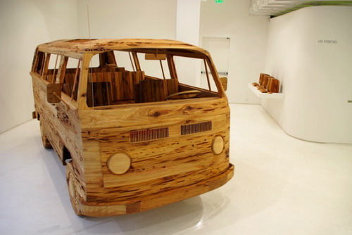 Não consegui muita informação sobre esse museu, mas as obras são de um artista chamado Stottsel Lee, que transforma madeiras em objetos do nosso cotidiano (ou do dele, afinal tem uma Kombi primeiro modelo e um MAC geração old school), mas enfim. Esse trabalho parece estar em Londres desde 2006 para quem quiser conhecer de perto. Só não sei em qual museu ele está.